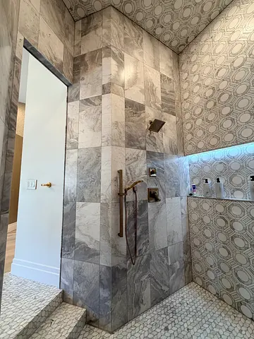 Custom feature walls, staircases, and architectural tile applications tailored to each space.